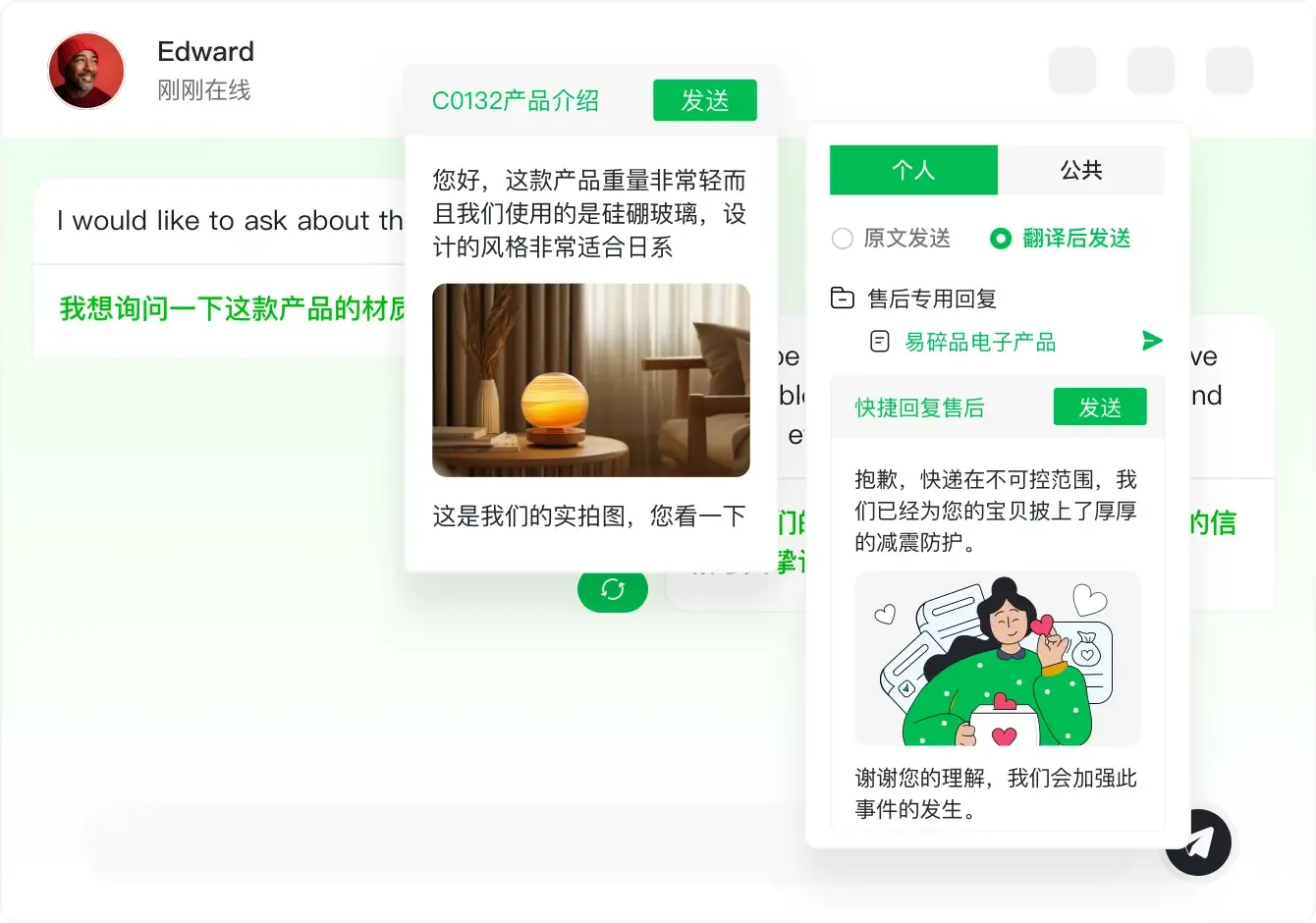管理者在后台设置公共话术、素材库,所有员工共同使用;